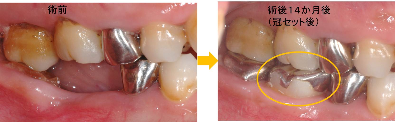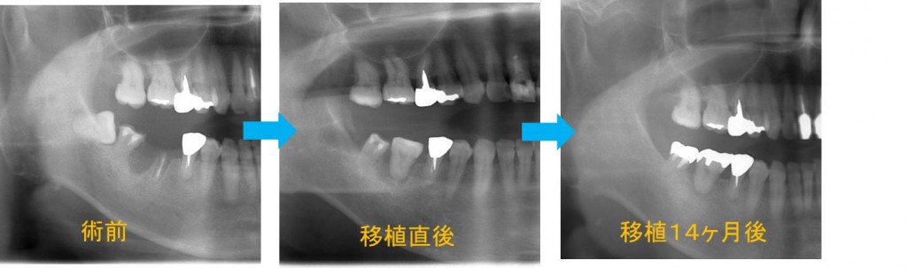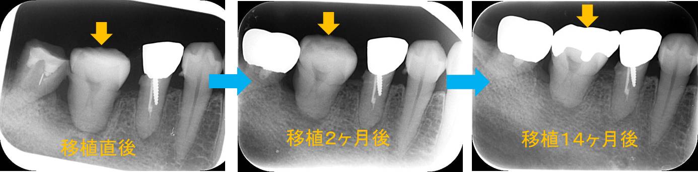 また、今回の移植は「歯の神経」が術後も生きていました。ほとんどの場合は、移植後に歯の神経が死んでしまい根管治療が必要になりますが、今回は神経が生きていたため根管治療を行う必要はありませんでした。