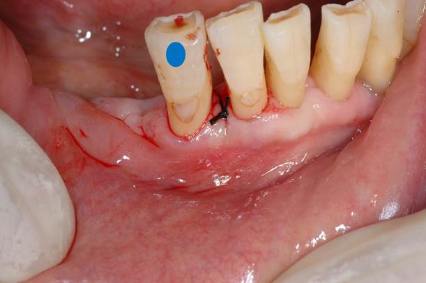 術後です。しっかりとした付着歯肉が獲得でき、安定しています。