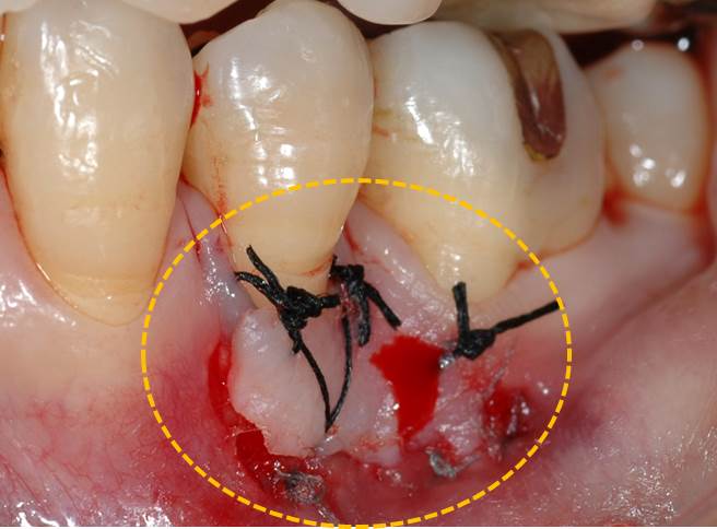「動かない歯茎」と「動く歯茎」があることは以前に御紹介しました。歯肉の健康をきちんと管理していくには「動かない歯茎」、いわゆる「付着歯肉」が必要になるため、付着歯肉幅が足りない場合は上顎から角化歯肉を移植して環境を整える場合があります。これを遊離歯肉移植術といいます。