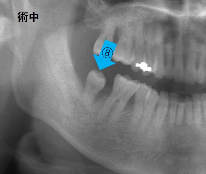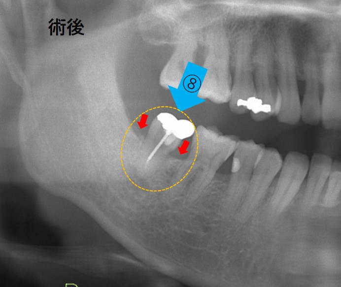 この場合、⑧を抜歯しても⑦の奥側の骨は吸収したままになり、⑦も⑧も共倒れになることが予想されました。