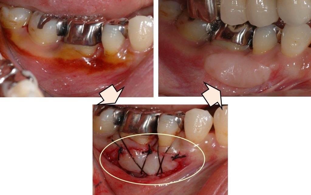 今回は「動く歯茎(歯槽粘膜)」しかない部分に「動かない歯茎(角化歯肉)」を移植したケースです。