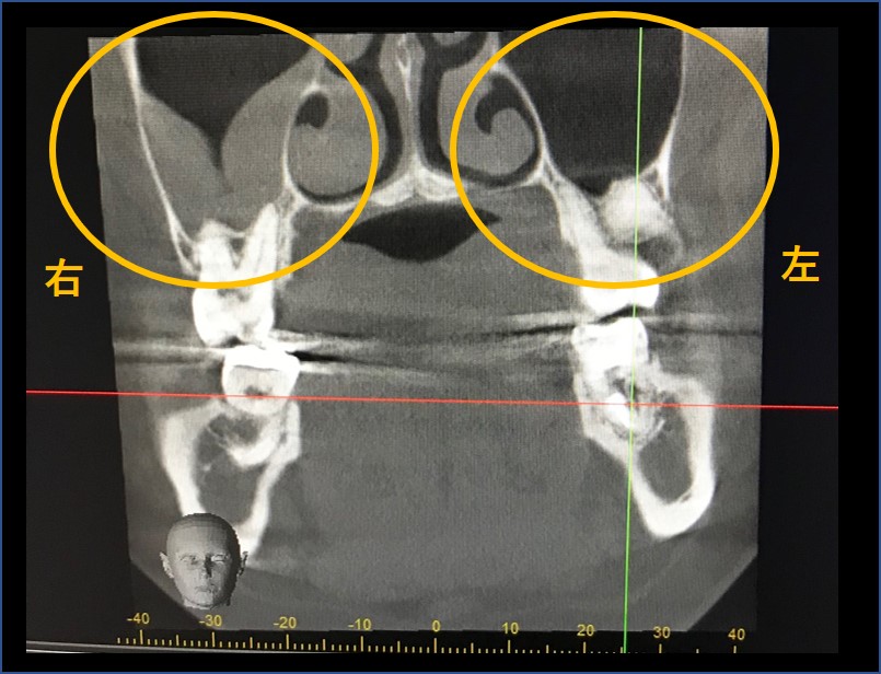 デンタルエックス線写真にて「治癒」と判断した症例ですが、CT撮影を行ってさらに診断します。下がCT画像です。