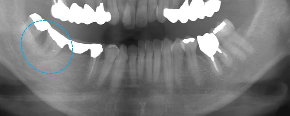 青〇の親知らずが浮き上がってきており、この親知らずも抜歯適応です。