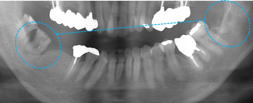 しかしながら、この親知らずをただ抜歯するだけでは勿体ないので、オレンジ○の歯を抜歯した後に移植することにしました。