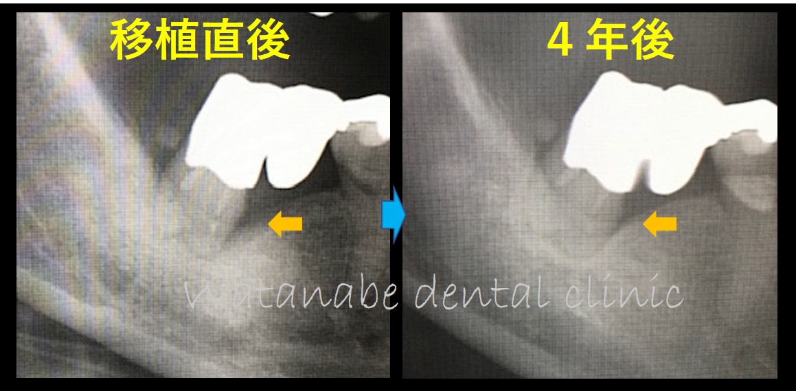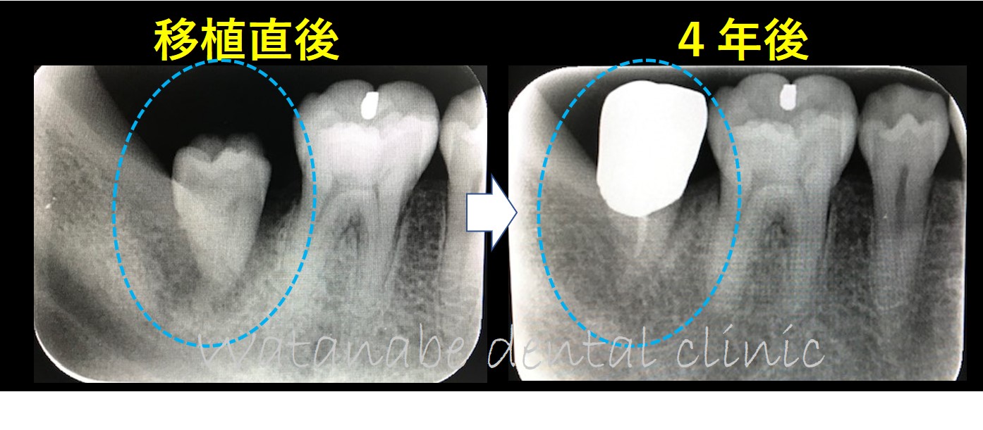 4年後のエックス線写真です。移植した歯に問題はなく順調に経過しています。